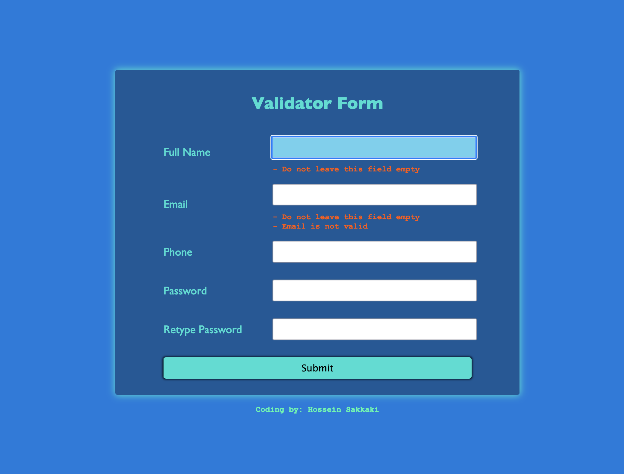 Designing and coding a powerful validator for front-end websites. This validator is designed based on the ClassBase and its codes are open sourced for use on Github.